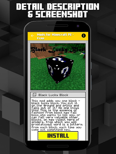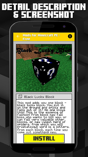 เพียงแค่เลือก mod ที่คุณต้องการให้กด Install แล้วคุณก็มีแล้ว จำไว้ว่าคุณต้อง BlockLauncher และ app Minecraft พ็อกเก็ตอย่างเป็นทางการเพื่อใช้ mod หรือ addon