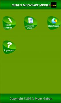 Moovface Mobile est une application Android de Moov Gabon. Elle offre la possibilité à tout détenteur d'un smartphone Android(version de l'OS supérieure ou égle à 3.0) d'identifier un abonné de l'opérateur de téléphonie mobile, Moov Gabon.Une fois l'application installée sur votre mobile, vous aurez un compte utilisateur au premier lancement de l'application. Ce compte permettra à Moov de comptabiliser le nombre d'abonnés que vous avez identifiés. Vous pouvez également obtenir le nombre d'abonnés que vous avez identifiés à partir de l'application. Noter également que tout abonné, ayant un numéro mobile Moov non identifié, peut télécharger l'application et s'identifier lui-même. Avec Moovface Mobile, Moov Gabon s'engage à faciliter l'identification de ses abonnés.