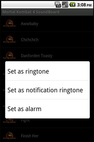 Listen Mortal kombat 4 sounds set as ringtone Set as notification ringtone Set as alarmIncludig total 103 sounds Excellent Fatality Finish Him and more..