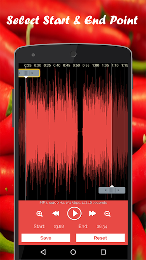 ในขณะที่เล่นส่วนที่เลือกของเสียงคุณสามารถดูเคอร์เซอร์ตัวบ่งชี้และรูปคลื่นเลื่อนอัตโนมัติ คุณสามารถซูมคลื่นนี้และตัดส่วนที่ดีที่สุดของเสียงและสร้างริงโทน