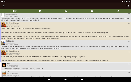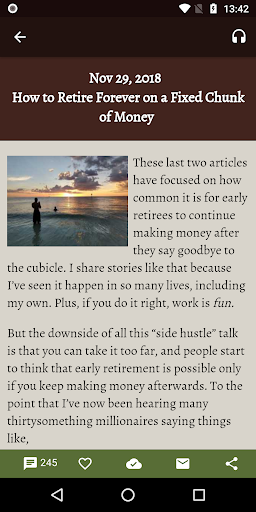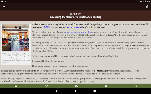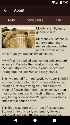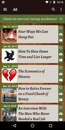 แอป Mr. Money Mustache มีบล็อกความเป็นอิสระทางการเงินจำนวนมากที่นำมุมมองที่หลากหลาย Mr. Money Mustache นำเสนอทัศนคติที่ไม่มีเรื่องไร้สาระสำหรับงานเขียนของเขาเกี่ยวกับวิธีการบรรลุความเป็นอิสระทางการเงินและใช้ชีวิตที่น่าทึ่งและน่าทึ่งของการพักผ่อนและความสุข