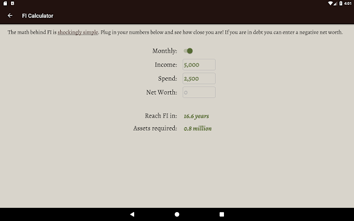 - ค้นหาบทความเกี่ยวกับหัวข้อที่คุณชื่นชอบ - ประเมิน Fi Date ของคุณด้วยเครื่องคิดเลข FI - ลดการใช้จ่ายของคุณด้วยการประหยัดเงินฝากออมทรัพย์