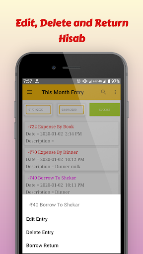 คุณสามารถแก้ไขรายการของคุณ Khata Book / Hisab Kitab / ผู้จัดการค่าใช้จ่าย