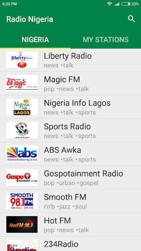 Radio - is a free application for listening to the radio online. Our collection includes the most popular AM, FM live radio and internet radio stations: Nigeria Info Abuja, Crown fm, Sleekfm, Real 360 Radio, Sports Radio WE FM and others.