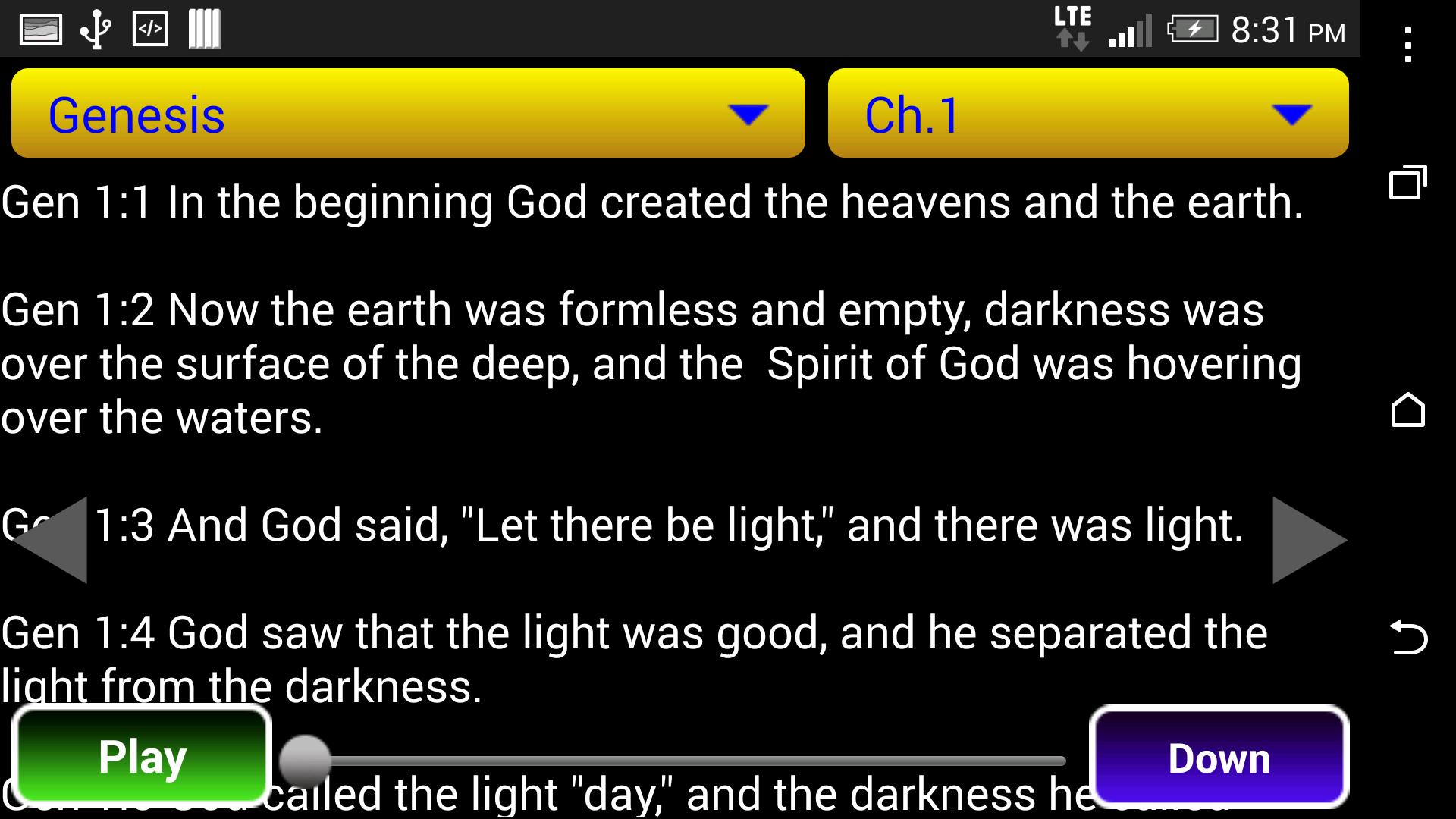 This is NIV Audio Bible and you can listen God's voice while the phone is connected to 3G or Wi-Fi networks. You can also read the bible in offline anytime.