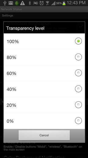 - Setting the transparency level of the application