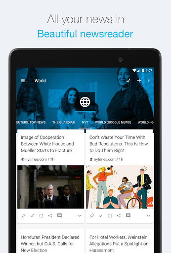 NewsTab is a beautiful newsreader, designed for enjoyable browsing of your favorite news sources with a visual, image reach, experience. It combines the flexibility of open RSS readers such as Feedly or (the late) Google Reader, with the intuitive and visual experience of modern news apps, such as Flipboard, Apple News and NewsRepublic.