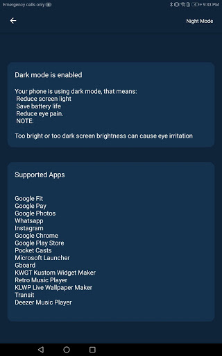 แอพนี้ช่วยให้คุณเปิดใช้งานโหมด Android Night บนอุปกรณ์ที่ไม่ได้ให้โหมดกลางคืน ตัวเลือกในการตั้งค่าระบบของพวกเขา