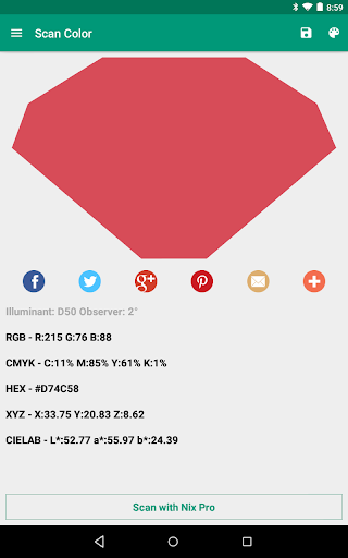 ต้องมีผู้ออกแบบและผู้เชี่ยวชาญสีเซ็นเซอร์สี Nix Pro เป็นเครื่องมือ Eyedropper สีชีวิตจริงที่ใช้ การคาดเดาสี เพียงแตะที่ Nix Pro ไปยังพื้นผิวใด ๆ และดูการอ่านสีที่แม่นยำในสมาร์ทโฟนของคุณทันที เมื่อสแกนแล้วคุณสามารถบันทึกแชร์หรือเปรียบเทียบแถบสีด้วยแอพเซ็นเซอร์สี Nix Pro สำหรับ Android ในการใช้งานทั่วโลกโดยผู้เชี่ยวชาญในโทรทัศน์การออกแบบการพิมพ์สิ่งทอการออกแบบเว็บและการออกแบบตกแต่งภายใน NIX Pro บล็อกแสงโดยรอบทั้งหมดและให้แหล่งกำเนิดแสงที่ปรับเทียบทั้งหมดทำให้แม่นยำยิ่งขึ้นกว่าดาดฟ้าแฟนหรือตามนุษย์ BR> - แอพนี้ใช้งานได้กับอุปกรณ์ 'Nix Pro' เท่านั้น ในการใช้อุปกรณ์ 'Nix Mini' โปรดใช้แอพ 'Nix Paints' และ 'NIX Digital' ซึ่งมีอยู่ใน Play Store