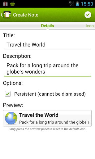 Add custom notification notes and reminders to your notification area with beautiful modern looking icons. This application was created with simplicity in mind and to be as user-friendly as possible. Never forget the things that matter most.