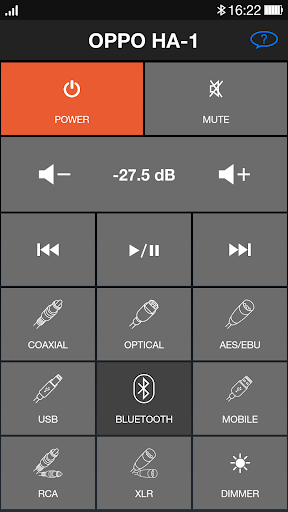 OPPO HA-1 Bluetooth Remote Control ให้วิธีที่สะดวกในการควบคุมแอมพลิฟายเออร์หูฟัง OPPO HA-1 ของคุณจากโทรศัพท์ Android ของคุณเพียงจับคู่อุปกรณ์มือถือของคุณด้วย HA-1 ผ่าน Bluetooth และแอปจะทำงานแบบเดียวกันกับ IR Remote ที่จัดส่งด้วย HA-1คุณจะสามารถเปลี่ยนแหล่งอินพุตปรับระดับเสียงเสียงปิดเสียง / เปิดเสียงตั้งค่าระดับความสว่างของหน้าจอและแม้กระทั่งควบคุมการเล่นแหล่งเสียงดิจิตอล