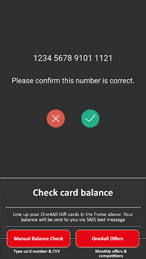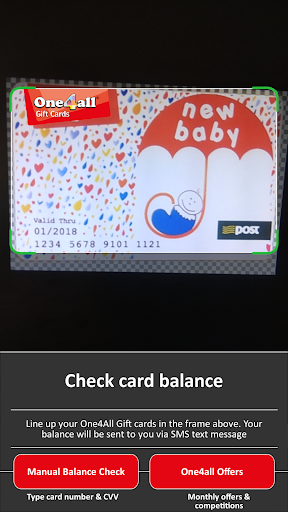 The One4all Photo Balance Check App makes checking your One4all balance easier than ever. Simply launch the app and use your phone’s camera to snap your card. The app will convert the card number into a text message which, when sent, will return your current balance back to your phone. Simple!
