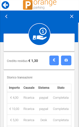 Dal tuo borsellino elettronico saranno detratti gli importi dei consumi effettuati per parcheggi in relazione al tempo di sosta utilizzato.