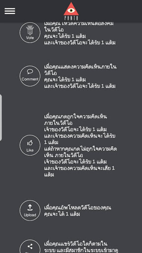 พันตา application เพื่อสังคม ในการปลุกจิตสำนึกร่วมกัน สนันสนุนการทำความดีเพื่อส่วนรวม และสร้างจิตสำนึกต่อสาธารณะในรูปแบบของการแชร์คลิปวิดิโอ Application Panta เป็นการรวบรวมคลิปวิดิโอจากประชาชนทั่วไปที่ต้องการมีส่วนร่วม ในการส่งเสริมการทำความดี ด้วยเรื่องราวที่มีผลกระทบต่อสาธารณชน ทั้งความดีและความไม่ดี ที่เกิดขึ้นจากเรื่องจริง