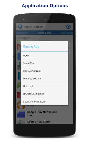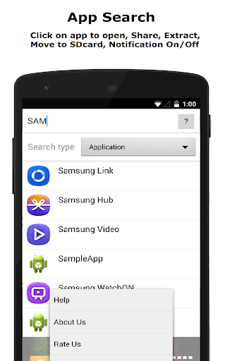 - เปิด, แชร์, แยก (APK), ย้ายไปที่ SD-card, การแจ้งเตือนเปิด / ปิด, ถอนการติดตั้งและ อื่น ๆ อีกมากมาย.