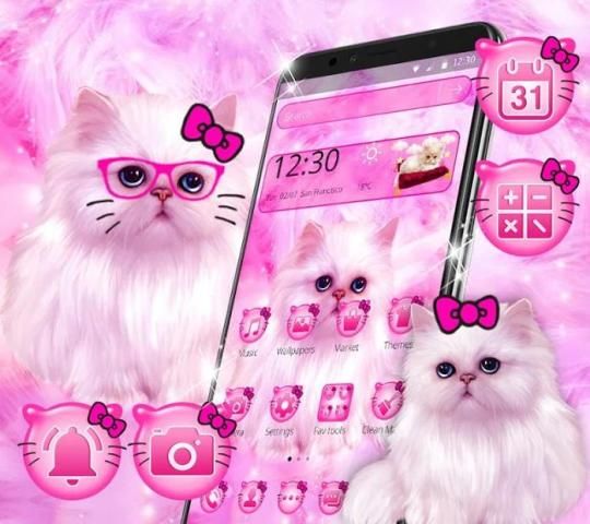 3D Pink Cute Cat theme is free for whoever loves giant pink wallpaper app. We love the baby cute design with lovely baby pink wallpaper.
