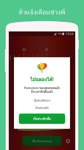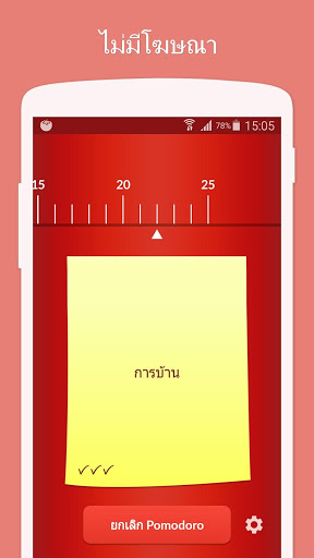 คุณสมบัติของ Pomodoro Timer Lite บางส่วน: