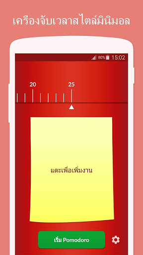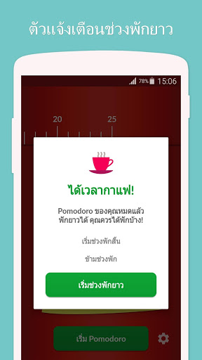 Pomodoro™ และ Pomodoro Technique® เป็นเครื่องหมายการค้าจดทะเบียนของ Francesco Cirillo แอพนี้มิได้มีส่วนเกี่ยวข้องกับ Francesco Cirillo