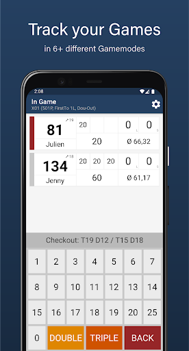 ติดตามเกมปาเป้าของคุณในกระดานคะแนนในโหมดเกมที่แตกต่างกัน 6 โหมด ขณะนี้มีโหมดเกม X01 ที่กว้างขวางเช่นเดียวกับคริกเก็ตตลอดเวลา, เซี่ยงไฮ้, กำจัดและ Highscore โหมดเกมเพิ่มเติมจะถูกเพิ่มตลอดเวลา สำหรับแต่ละโหมดเกมคุณมีตัวเลือกการกำหนดค่า