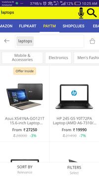 Search for any products and get result on Flipkart, Snapdeal, Paytm, Amazon and ShopClues in different Tabs.