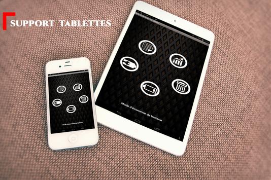 ✔ Battery economy mode - adjust the consumption parameters (WiFi, luminositén, 3G / 4G, GPS,Flight mode)