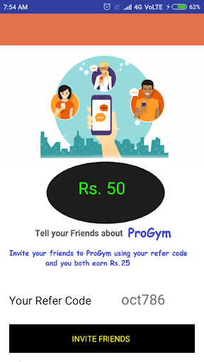 Now progym users can refer app to their friends using their referral code and earn progym credit points.