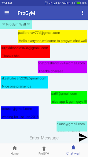Progym users can chat among themselves on common chat wall.