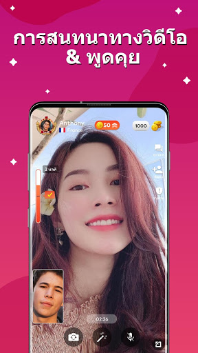 - ค้นหาเพื่อนจากทั่วโลกผ่านวิดีโอแชท (ด้วย 3G / 4G และ Wi-Fi)