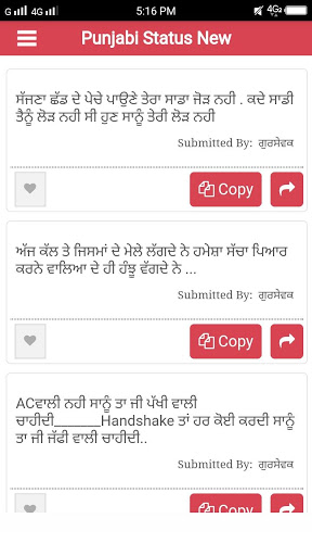 แอปสถานะ Punjabi สำหรับ Whatsapp และ Facebook ฟรีคุณสามารถคัดลอกสถานะหรือแชร์โดยใช้ปุ่มแชร์ inbuilt