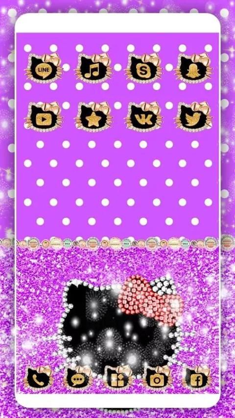 Kitty and bowknot are the most popular cartoon elements among girls and young ladies around the world. We highly recommend this cute kitty bowknot theme for you. Why not download this stylish kitty diamond theme and make your phone with your style? Just have a try and you will cannot resist it. Your phone will be the most stylish, distinctive and eye-catching one with with the amazing cute and kawaii theme installed. We designed this lovely glitter theme for all the girls and young girls who love kitty, diamond, purple and bling feeling. If you are a girl who like these elements, please get this lovey and sparkly theme for your favorite phone。