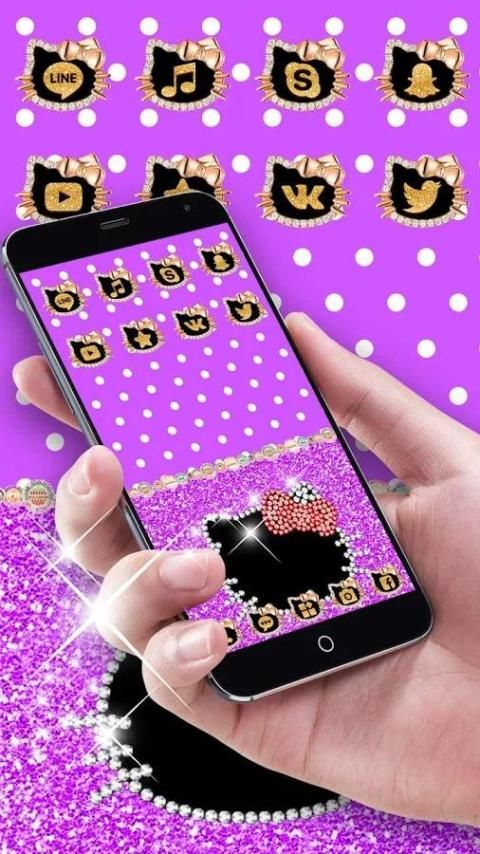 Purple Kitty Diamond Bowknot Theme is our latest theme designed for those kitty and bowknot lovers. The cute glitter theme with purple background brings your phone a romantic atmosphere. Why not download and have a try. The big black kitty icon is so cool and eye-catching on your screen. The glitter kitty icon pack with rose gold bowknots is compatible with most of popular apps. So don’t hesitate and download it for your phone and share it with your friends. Almost all girls like luxurious diamond and shinny things, so we mix the shinny background and diamond element into this theme which is very sparkly and lovely. The dotted element is also a popular element for girls and young ladies. All you like is here, just download the cute Purple Kitty Diamond Bowknot Theme and your friends and families will compliment your taste. Purple Kitty Diamond Bowknot is a smart wallpaper theme for Android that makes your phone beautiful, fast and interesting.