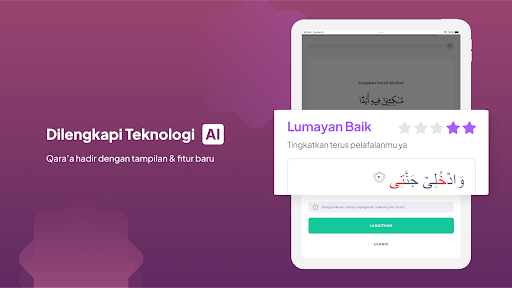 qara ' a เป็นแอพพลิเคชั่นการเรียนรู้สำหรับอัลกุรอานและอัลกุรอานของอินโดนีเซียที่ให้ประสบการณ์การเรียนรู้แบบโต้ตอบและสนุกสนานมากขึ้นด้วยการใช้เทคโนโลยีปัญญาประดิษฐ์ผู้ใช้สามารถเรียนรู้อัลกุรอานและเรียนรู้อัลกุรอานของอินโดนีเซียได้ทุกที่ทุกเวลา