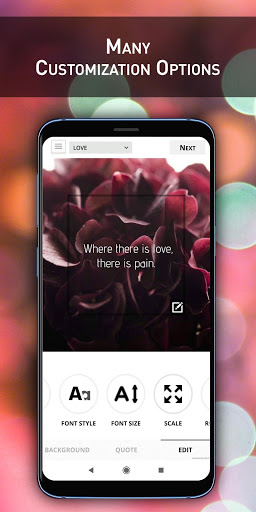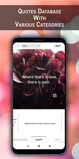 Quotes Creator Pro is the easiest way to create and share your thoughts and quotes with your loved one. The Quotes Creator Pro ready with customizing options such as text size, text colors, background, and fonts, or you can choose your photo from your phone's Photo Gallery to be used as background, so you can share your own quotes with your friends. After customizing your own quote, you can save/share with the world via Instagram, Facebook, Twitter, WhatsApp or other apps.