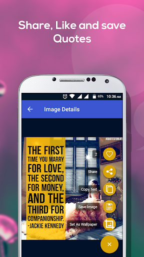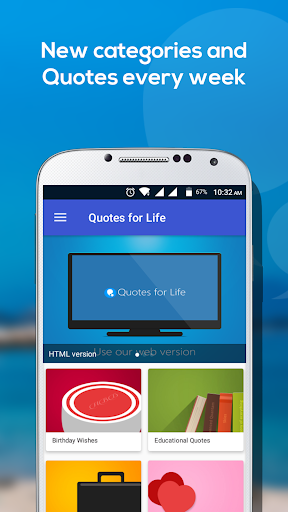 Your area of interest can be different such as Travel Quotes, Wit and Wisdom Quotes, Love Quotes, Internet/Business Quotes, Inspirational Quotes, Educational Quotes, Motivational Quotes, Birthday Wishes,Wedding Day Wishes, Wedding Anniversary Wishes, Good Morning Wishes etc. Our aim is to provide all types of quotes and wishes under one roof and we are progressing towards the target. Yes, We provide 100% original quotes for life ! All Quotes are freshly created in 2016 and 2017. Enjoy 👍 Thank you for downloading Quotesforlife App.