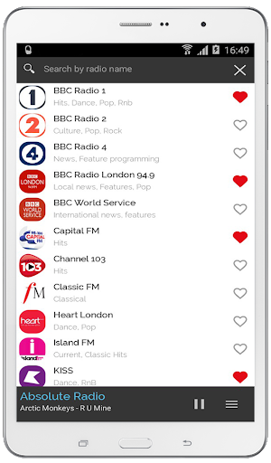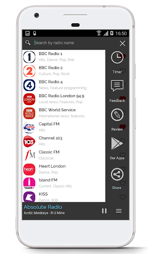 - a powerful search engine to easily find radio stations by name and music genre,