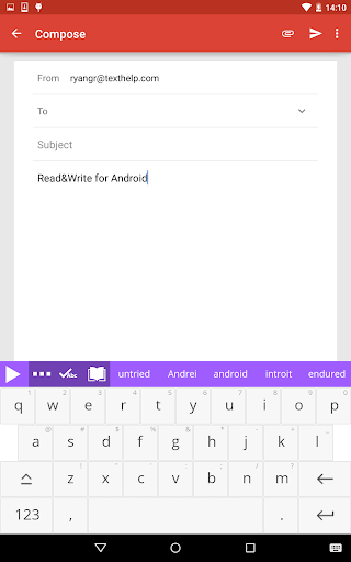 Read&Write for Android is an easy to use alternative keyboard with integrated features to help you with writing content such as emails, social media, or interacting with online forms etc. Specially created for Android tablets, it’s great for anyone who needs a little support with their reading and writing.