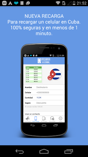 Desde esta app tienes la posibilidad recargar el saldo del celular a tus familiares y amigos en Cuba. Cada vez más cubanos poseen teléfonos celulares y usan Internet para enviar correos electrónicos. ¡No esperes a que se queden sin comunicación! Además podrás enviar SMS a Cuba totalmente ¡GRATIS!