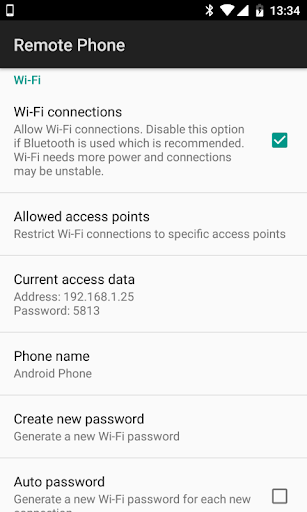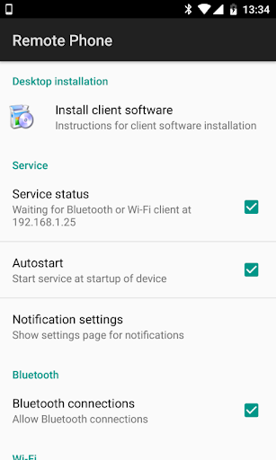 RemotePhone features (app running on your phone):