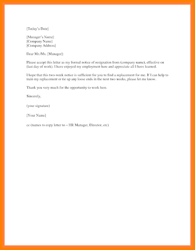 5+ Two Week Notice Resignation Letter Formats