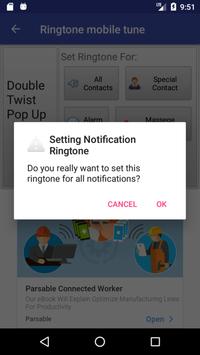 Install Ringtone mobile tune app and check the sound clip of the downloaded ringtones with the play button and if you want to check the ringtone then click the ringtone name. That will get you to the next screen of the application. Here also you can check again the ringtone sound with the play button. Here are set as buttons. All Contact, Special contact, Alarm tone, Message Notification, Share. When you click any one of these buttons the application required permission will appear to you. Allow these permissions. Turn on the allow modify System setting and go back with back press. Click again the button and allow the contact and allow Ringtone mobile tune to access photo, media and file on your device.