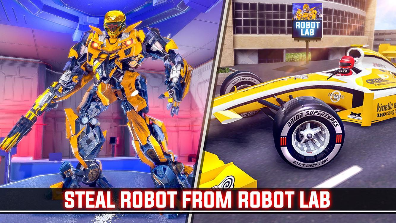 Get behind the wheel of robot transforming games & see the car transformation into future robot who is capable of ultimate robot wars. Perform robot transform into formula cars & enjoy formula car chase in super robot games. Start challenging mission of transforming robotics & shoot enemy robots or upgrade formula robot games simulator 3d to win the formula race in 3d city battle games. Play real robot battle of formula one car transform and become mech warrior who protect citizens from evil robot attack. Enter into mech wars of steel robot simulator and Save city school from futuristic robot battle through grand formula drift. Take charge of robot chase in formula games to get the new experience of robot car transformation into thrilling robot wars. Play future robot shooting games and destroy enemy robotic lab or encounter monster robots with the help of ultimate robot car transform into crazy formula car. Speed up formula one car & complete mission of flying robot hero who kill the terrorist robots which are trying for robot attack on city hospital in robot superhero games. Be expert mech warrior in robot battle games or start ultimate police car chase of robbers who want to rob the world bank with formula drifting and racing. This grand formula chase games have ability of robot car transform into superhero robot who will destroy enemy robo lab in free war games.