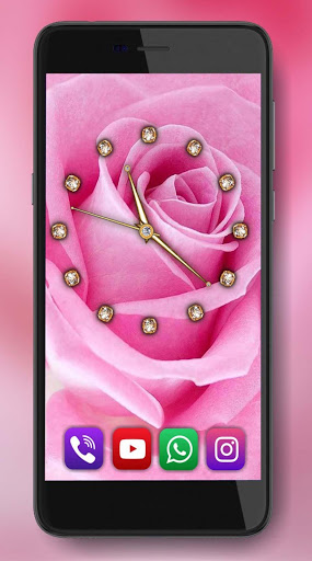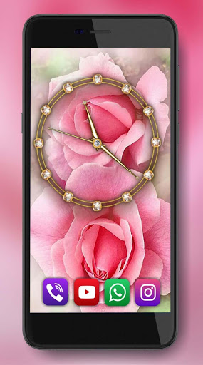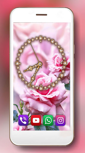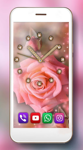 Roses Pink Diamonds Clock Live Wallpaper - วอลล์เปเปอร์ที่ดีและเรียบง่ายพร้อมกราฟิกที่เลือกเอฟเฟกต์ที่สวยงามและภาพเคลื่อนไหว แจกจ่ายฟรี.