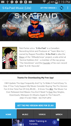 Get The Paid/Pro Version For Only $5.00 To Remove Any And All Ads Forever And Show Real Support For An Upcoming Artist!