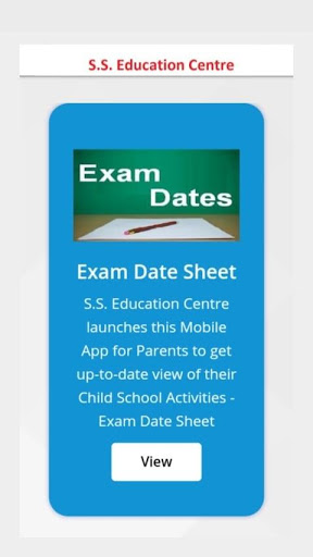 S.S. Education Centre, Kanpur (http://www.sseducationcentre.org) in association with Next Tech Career Solutions Pvt. Ltd. (http://www.nexttechcareer.com) launched Mobile app for Parents and Students on 25th July, 2019. This App is Very helpful for parents to get update about their kids. Once the app is installed on the mobile phone, student/parent can view school notifications, homework, Exam Date Sheet and calendar. The best part of this app is that, it frees school from mobile sms gateways which most of the times get choked or barred in case of emergency.