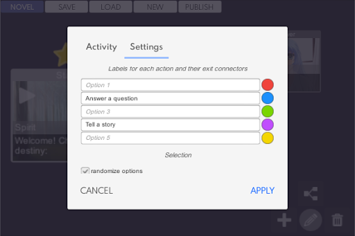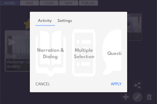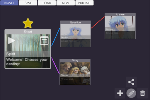 ใหม่! ตอนนี้เป็นไปได้ที่จะแปลงนวนิยายภาพของคุณเป็นแพ็คเกจไฟล์เดียวที่มีไฟล์สื่อหรือแอปที่เผยแพร่เพื่อแบ่งปันกับเพื่อนของคุณได้อย่างง่ายดาย เพียงใช้ตัวเลือก "เผยแพร่" ที่เมนูด้านบนภายในตัวแก้ไขนวนิยาย