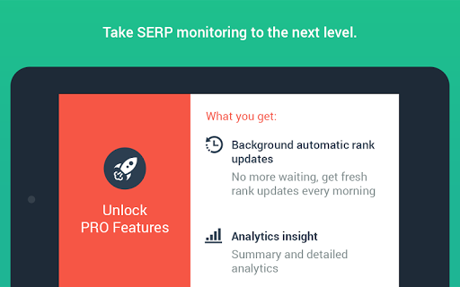 - Rank checking happens automatically once a day (when you open the app), but can be started manually for all keywords or only a few