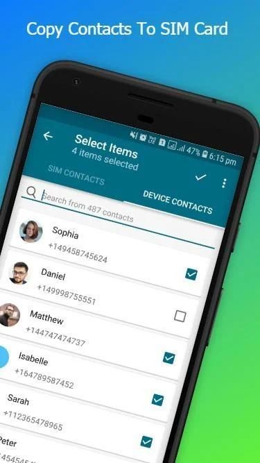 - Add multiple contacts from device to SIM.