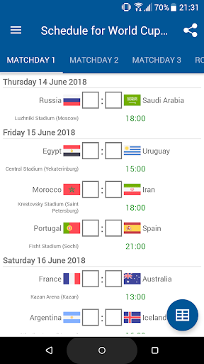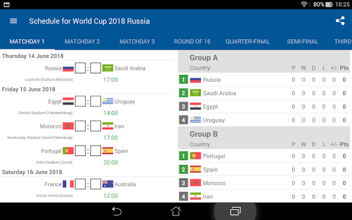 Schedule for World Cup 2018 Russia is an application for anyone who loves and is interested in football.