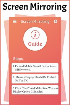 Screen Mirroring with TV App will assist you to scan and mirror your android phone or tab's screen on smart TV/Display or Wireless dongles or adapters.