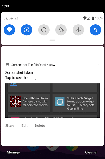เพิ่มปุ่ม/กระเบื้องลงในแผงการตั้งค่าอย่างรวดเร็วเพื่อถ่ายภาพหน้าจอ